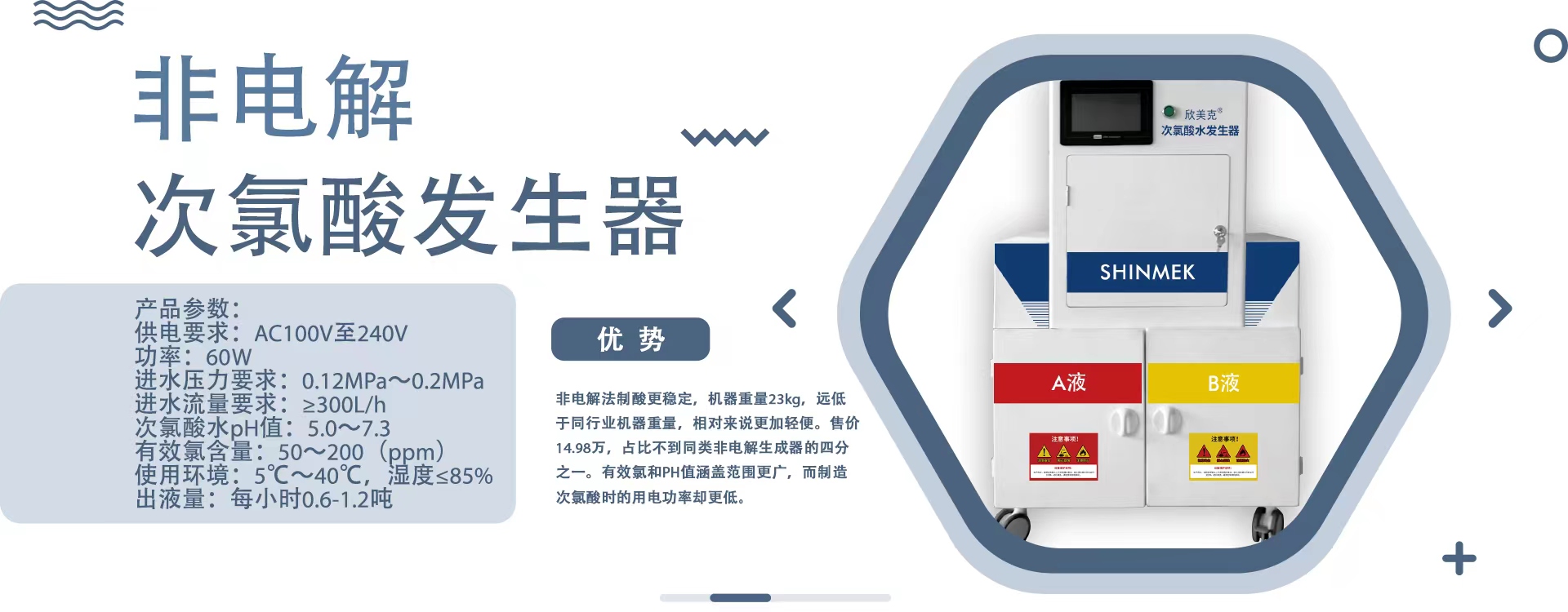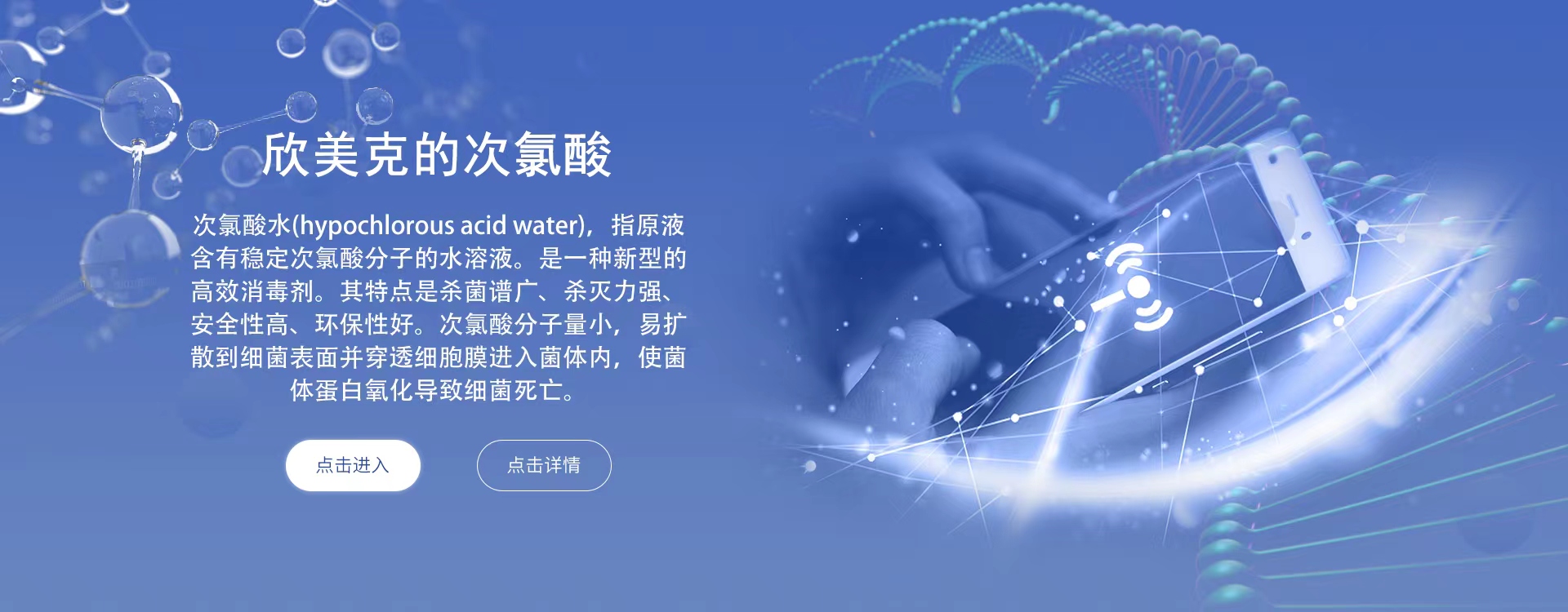 欣美克公司與日本近藤技術研究所合作,引進日本全新專利技術(非電解微酸性次氯酸水生成工藝),創新研發一體化消毒殺菌設備,自主開發物聯網智能管理系統,為家庭、字校、醫療衛生機構、酒店、食品加工、農業、畜牧業等行業提供高效的系統化,智能化的整體消毒方案。